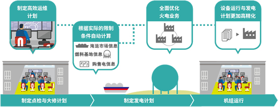 通過集中管理多家電廠的運(yùn)行和停機(jī)計劃,提升電廠效益。綜合考慮電力需求的增減等外部情況、電廠設(shè)備等內(nèi)部情況以及燃料價格、海運(yùn)市場信息等發(fā)電成本,同時對多家電廠的停機(jī)與維護(hù)計劃自動統(tǒng)籌制定并管理。