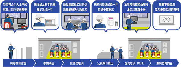 自動收集發(fā)生的實際故障及問題,制定與員工個人水平相符的教育計劃,編制教育內(nèi)容。實際故障及相應(yīng)的處理方法被分類分組記錄下來,可以自動生成培訓(xùn)手冊,留存寶貴知識經(jīng)驗。利用實際案例,配合線上教學(xué)講座(e-learning)、模擬訓(xùn)練、在崗培訓(xùn)(OJT)這三種學(xué)習(xí)方法,增加實務(wù)經(jīng)驗,提升業(yè)務(wù)水平。