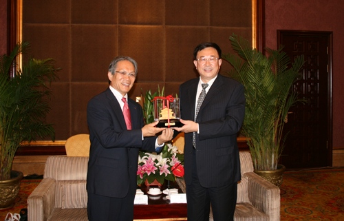 企業(yè)新聞東芝中國總代表桐山輝夫與沈陽市市長陳海波親切會談2012年-08月-06日東芝中國總代表 桐山輝夫與沈陽市市長 陳海波在沈陽進行了親切地會談。桐山輝夫?qū)|芝在沈投資企業(yè)得到沈陽各級政府部門的大力支持表示感謝。同時表示,東芝(中國)有限公司將在沈陽設(shè)立分公司,希望在沈陽尋求更多合作機會,謀求更大發(fā)展。 -
