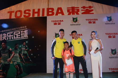東芝于2014年正式成為杭州綠城俱樂部的主贊助商,繼續(xù)為國內(nèi)頂級足球賽事注入動力,并提出了“東芝快樂足球”的口號。未來,與中國足球結(jié)緣的東芝將再接再厲,使“推動中國足球事業(yè)發(fā)展”,“助力中國青少年健康成長”的理念更好地融入社會實踐,也讓東芝的“快樂足球”綻放出更美更絢爛的色彩。