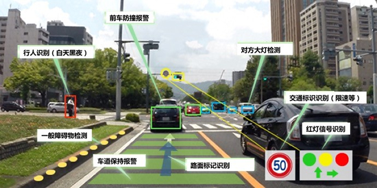 Visconti™4系統(tǒng)采用東芝獨(dú)創(chuàng)的高精度檢測(cè)技術(shù),經(jīng)過(guò)諸多算法和圖像硬件加速器對(duì)可視物進(jìn)行數(shù)據(jù)分析處理,可高效的辨別背景物體以及步行者之間的微妙色差,不僅在白天,即便是低光照射情況下或是在漆黑的夜晚,“Visconti™4”圖像識(shí)別處理器亦可輕松對(duì)車(chē)輛和行人加以辨識(shí),對(duì)交通信號(hào)、障礙物、行車(chē)線(xiàn)等信息加以識(shí)別,從而實(shí)現(xiàn)各種高級(jí)的駕駛員輔助應(yīng)用,如入車(chē)道偏離警告、前方/后方防撞警告、前方/后方行人防撞警告、交通標(biāo)識(shí)識(shí)別等等,從而大大提高車(chē)輛行駛安全性。