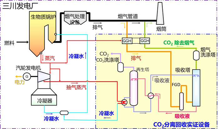 此次投運的設(shè)備于2018年2月在鄰接同電廠的位置開始進行安裝,試運行至今。通過本設(shè)備可以每天回收500噸以上的二氧化碳,這相當于三川發(fā)電廠每日二氧化碳排放量的50%,也是實現(xiàn)從火力發(fā)電廠分離回收二氧化碳排放量50% 以上的設(shè)備。