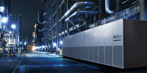 H2Rex™是使用氫氣供電供熱的純氫燃料電池系統(tǒng),發(fā)電時不會產(chǎn)生CO?,只排放水,是一款環(huán)保型發(fā)電機(jī)。除綠色氫氣外,它還可以使用工廠殘留的副產(chǎn)氫,提升能源利用率。同時,它的安全性高,可安裝于住宅、商用建筑和工廠等人們活動的場所附近。H2Rex™改變了傳統(tǒng)燃料電池系統(tǒng)的形象,其簡潔、不顯眼的設(shè)計,可與周圍環(huán)境融為一體。H2Rex™不僅擴(kuò)大了氫能的使用范圍,而且還是下一代能源基礎(chǔ)設(shè)施的象征,將為實(shí)現(xiàn)可持續(xù)社會做出貢獻(xiàn)。