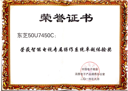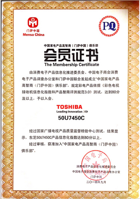 【2014年9月26日】9月24日,中國(guó)家電業(yè)盛會(huì)——“2014年中國(guó)家電產(chǎn)品智商評(píng)測(cè)結(jié)果發(fā)布會(huì)暨高智商(門薩中國(guó))俱樂部成立儀式”在北京舉行。東芝電視-50U7450C在家電產(chǎn)品智能評(píng)測(cè)中達(dá)到八級(jí)標(biāo)準(zhǔn),憑借便捷的操控性、穩(wěn)定的操作系統(tǒng)、強(qiáng)悍的硬件配置而一舉拿下“智能電視專屬智能操作系統(tǒng)卓越體驗(yàn)獎(jiǎng)”。同時(shí),該款產(chǎn)品也成為首批入選中國(guó)家電產(chǎn)品高智商(門薩中國(guó))俱樂部成員。