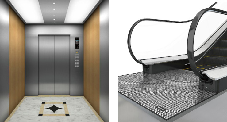 東芝本次提供的SPACEL系列無機房電梯,采用了東芝原廠設(shè)計制造的曳引機和控制柜,搭載東芝獨自研發(fā)的變頻控制處理器PP7,高效穩(wěn)定,綠色節(jié)能;在選材方面注重安全環(huán)保,主要基板無鉛化,選材高于歐盟RoHS標準,廢除15類特定化學(xué)物質(zhì)。KINDMOVER自動扶梯,設(shè)計時尚,融合東芝獨有安全防護技術(shù)柔性緩沖踏板,部件選用嚴格按照東芝集團標準,確保乘坐安全舒適。