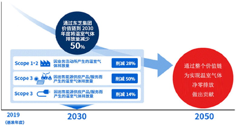 東芝從全球角度(如實(shí)現(xiàn)脫碳和循環(huán)經(jīng)濟(jì)等)出發(fā),制定了一個(gè)全新的長(zhǎng)期愿景——東芝集團(tuán)環(huán)境未來(lái)愿景2050。東芝的目標(biāo)是通過(guò)整個(gè)價(jià)值鏈,到2030年度將溫室氣體排放減少50%(與2019年度相比),為2050年實(shí)現(xiàn)溫室氣體凈零排放做出貢獻(xiàn),該目標(biāo)已獲得SBT的認(rèn)定。此外,東芝的經(jīng)營(yíng)理念是“為了人類(lèi)和地球的明天”,基于這一理念,東芝將進(jìn)一步深化環(huán)境經(jīng)營(yíng),在“創(chuàng)造豐富價(jià)值”的同時(shí),謀求“與地球共生”。