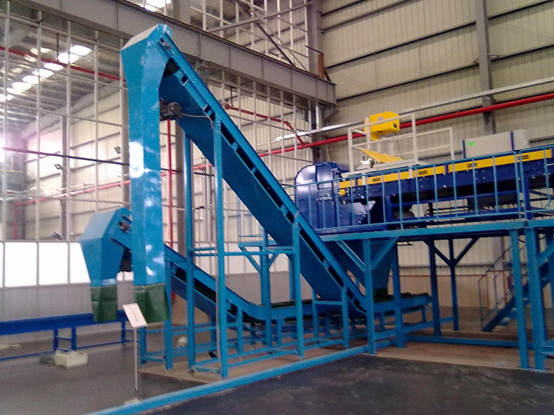 舊家電回收系統(tǒng)使用的帶裙邊皮帶輸送機