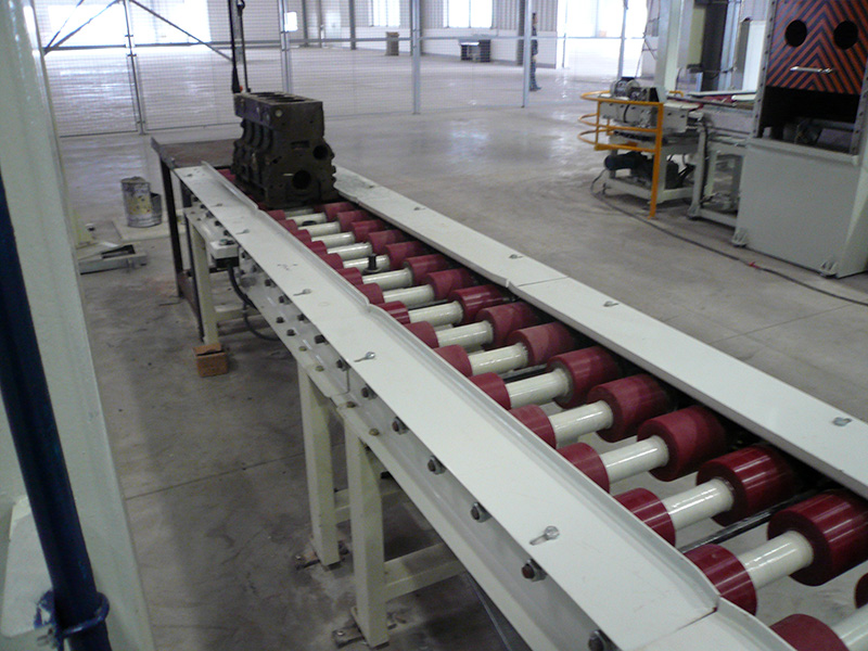 常柴股份公司柴油發(fā)動機輥筒表面包聚氨酯形式的裝配輸送線(直道輸送和彎道輸送線)