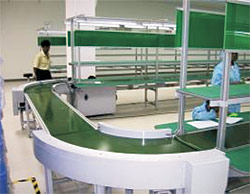高速運轉(zhuǎn)皮帶輸送機(jī)(采用同步帶輪驅(qū)動,速度快,噪音低)