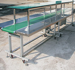 該型皮帶機(jī)運用于食品加工行業(yè)的輸送,機(jī)身采用不銹鋼或鋁型材結(jié)構(gòu),皮帶采用白色或綠色食品皮帶,驅(qū)動裝置采用調(diào)速電機(jī)或電動輥筒,能在不同的環(huán)境中使用。